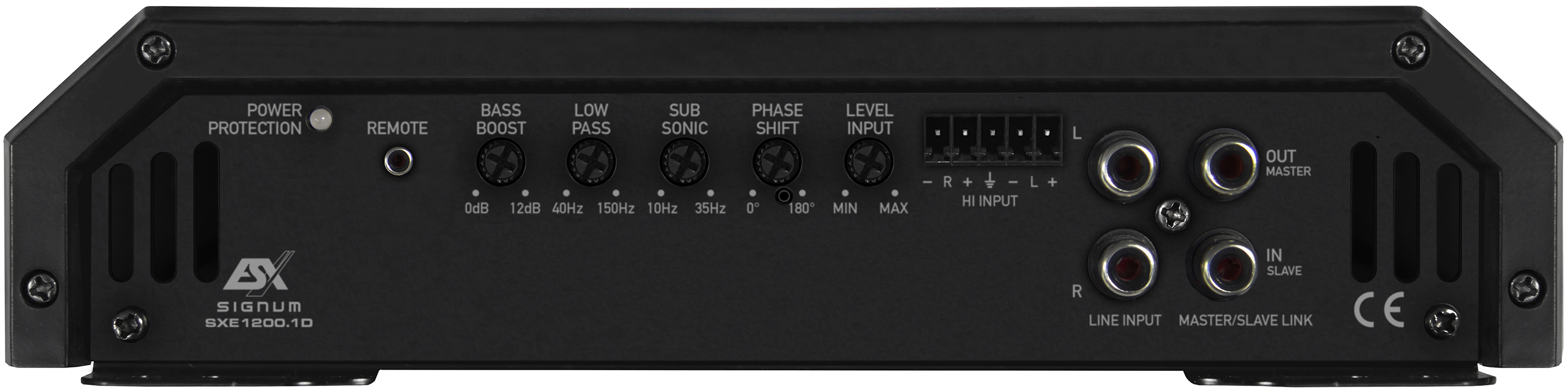 Ο ESX Signum SXE1200.1D ειναι μονοκαναλος ενισχυτης class-D 1x300 wrms/8Ω, 1x450 wrms/2Ω ή 1x600wrms/1Ω, για οδηγηση subwoofer. Διαθετει ενεργο crossover.