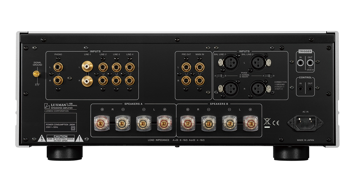 Ο Luxman L-100 Centennial ειναι δικαναλος ενισχυτης Class-A, ισχυος 2x20 wrms/8Ω.
