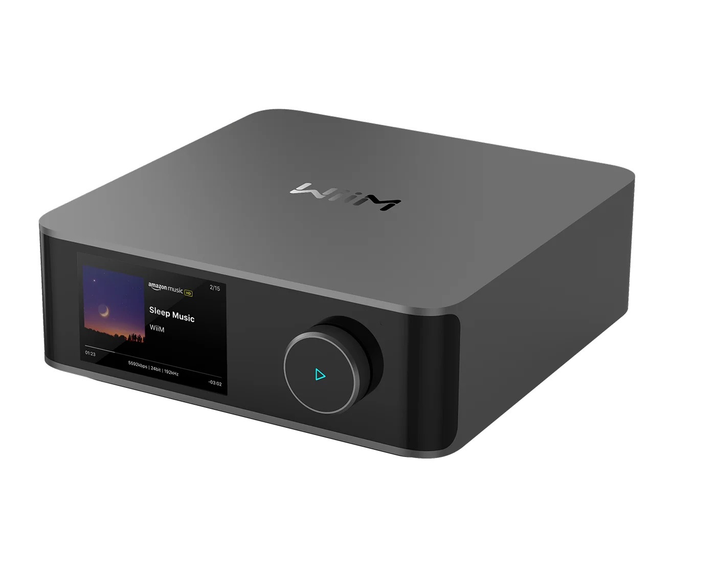 It supports audio streaming via Wi-Fi 6E and Bluetooth 5.3, with native support for Chromecast, Spotify Connect, TIDAL Connect, DLNA, and Alexa Cast. Multi-room playback and service access are managed through the WiiM Home app for iOS and Android.