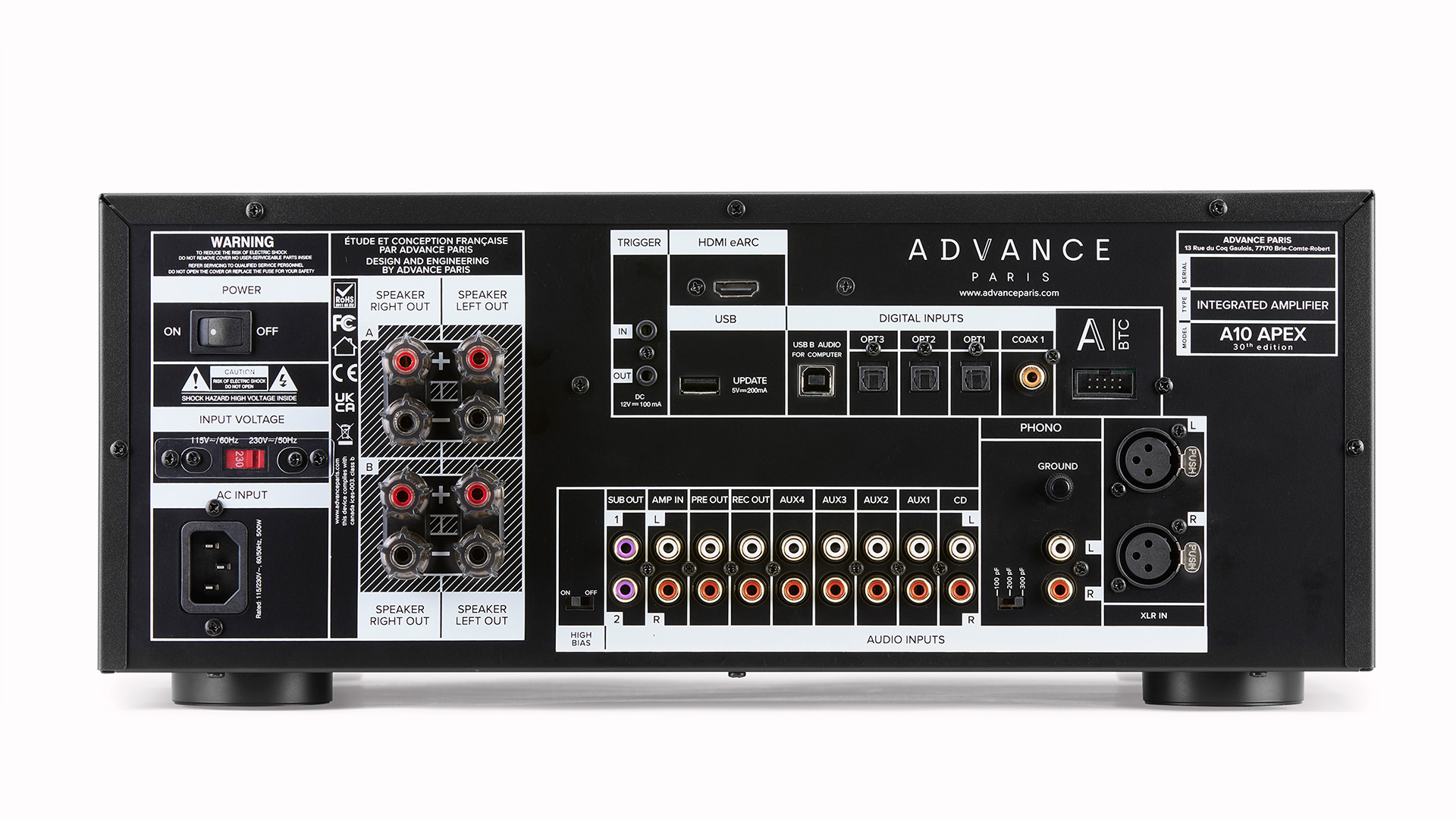 Ο Advance Paris A10 Apex ειναι δικαναλος ενισχυτης 2x 130 watts. Διαθετει προενισχυτικο τμημα με λυχνιες, usb dac, δεκτη Bluetooth και εισοδο HDMI ARC.