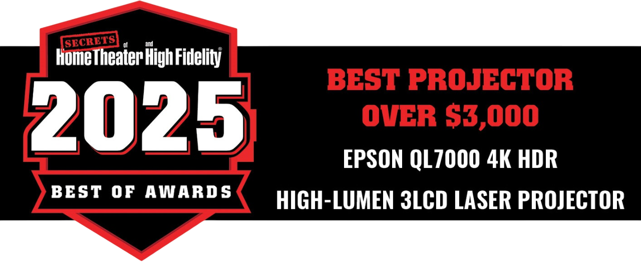 With advanced 3LCD laser technology at its core, the EH-QL7000W delivers 4K super-resolution images (3840 x 2160). With a 5,000,000:1 dynamic contrast ratio for well-defined shadows and even deeper blacks, this Professional Home projector also features a range of advanced image enhancement technologies, such as 4K frame interpolation to ensure smooth images, and super resolution to preserve detail in every scene.