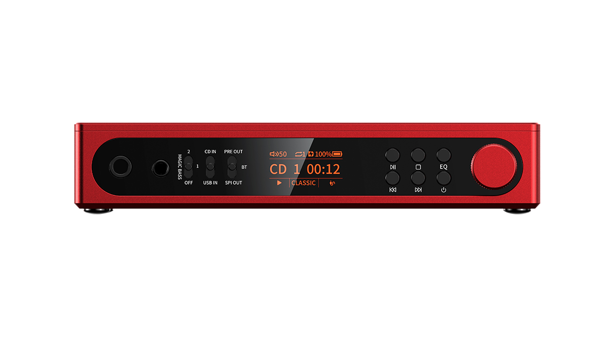 Designed with usability in mind, the FiiO DM15 R2R includes a retro-style orange TFT display, mechanical controls, infrared remote, 24 global sound presets, selectable BASS modes and ESP anti-skip protection. Outputs include 3.5 mm headphone, 4.4 mm balanced headphone, 3.5 mm LO and digital coaxial/optical outputs. Whether used as a portable transport, a desktop CD source, a Bluetooth CD streamer or a USB DAC, the FiiO DM15 R2R stands apart as the most versatile portable CD player in its class.