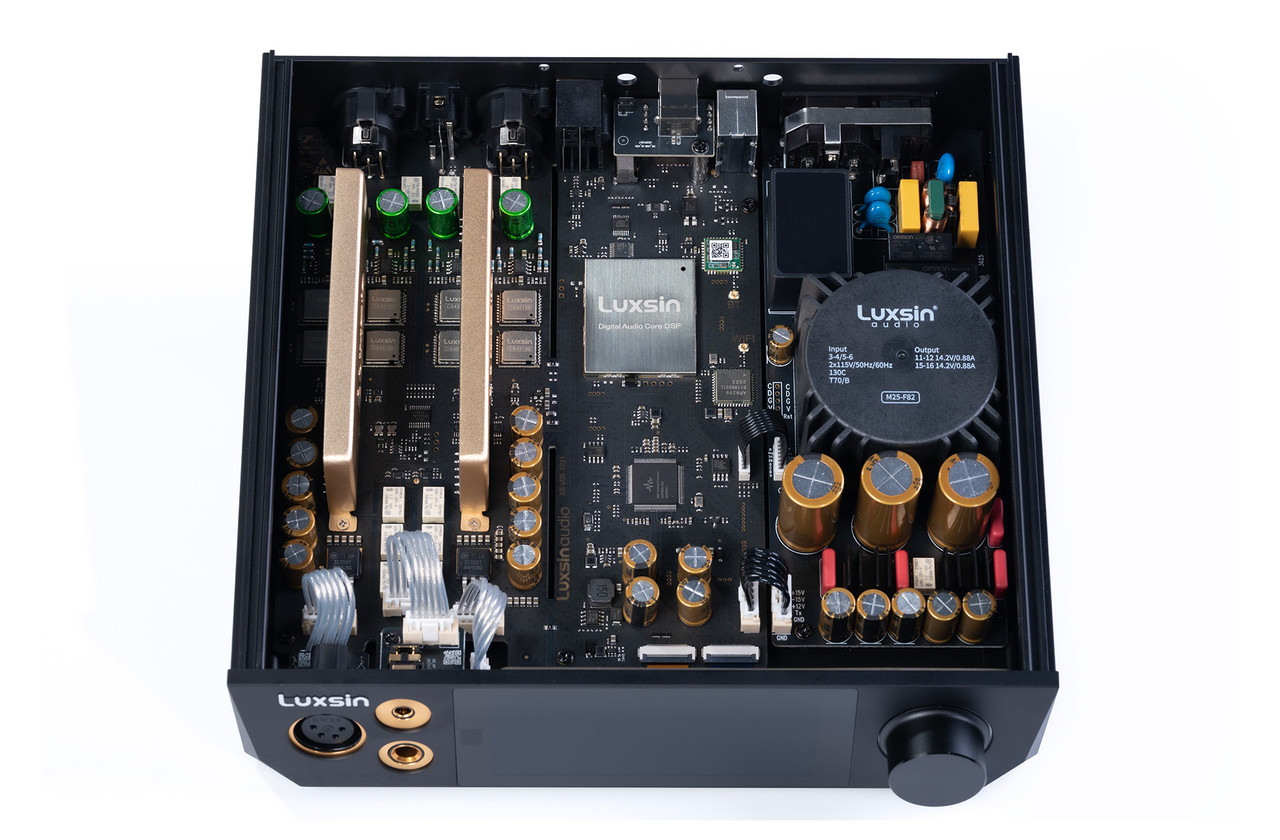 Its digital platform is based on Luxsin’s custom Digital Audio Core, combining a dual-core HiFi-5 DSP with ARM architecture for advanced real-time audio processing. This platform supports AI-assisted PEQ tuning, allowing the user to tailor the sound profile through app or web control with high precision, while also enabling advanced DSP functions and future firmware-based feature expansion. The DAC section is additionally protected by dedicated shielding covers to reduce interference and help maintain thermal stability during long-term high-resolution playback.