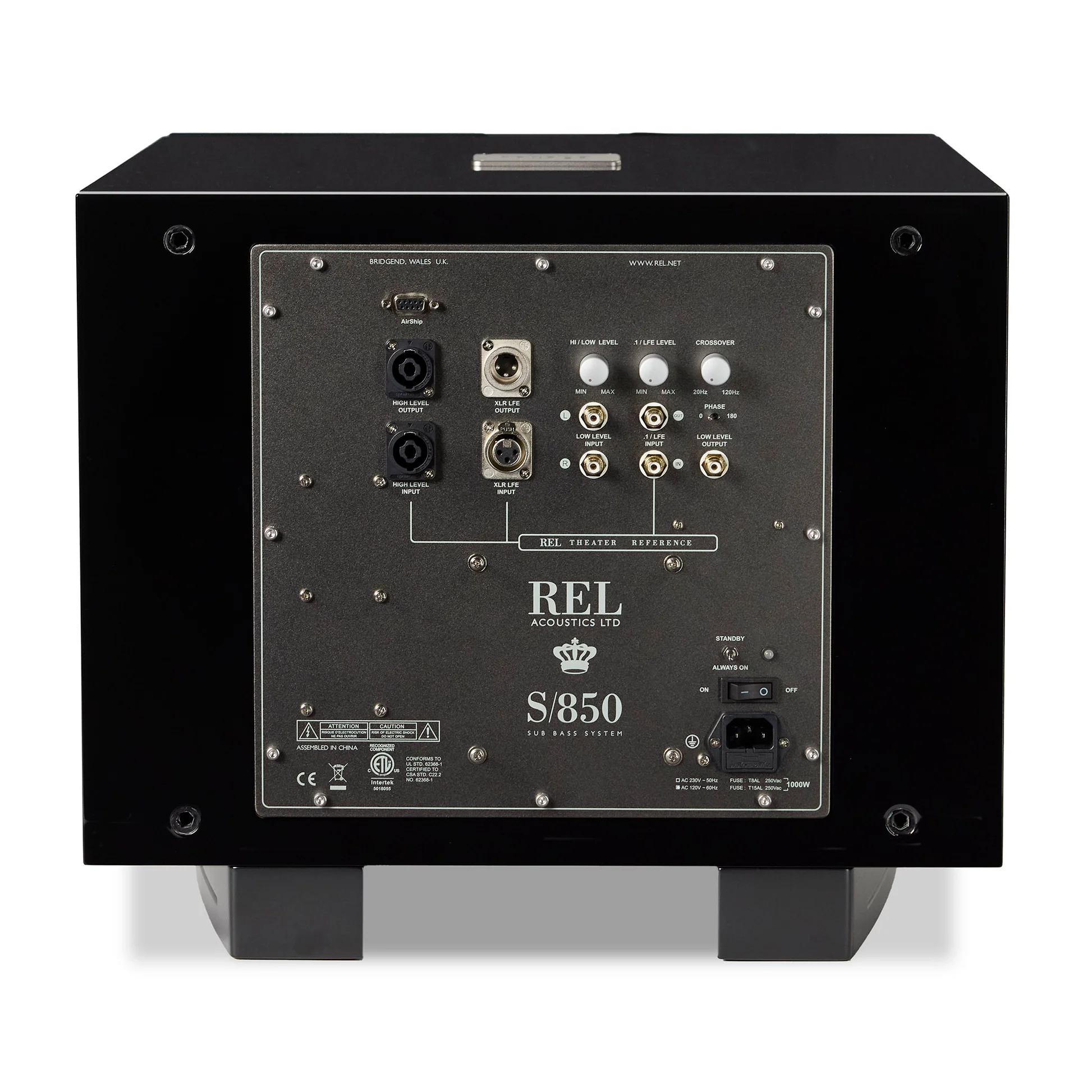Το REL S/850 ειναι ενεργο υπογουφερ με 1x 12" woofer και 1x 12" passive radiator, με ενσωματωμενο ενισχυτη 850wrms Linear Class D. Δυναται να συνδεθει ασυρματα μεσω REL Air System transmitter.