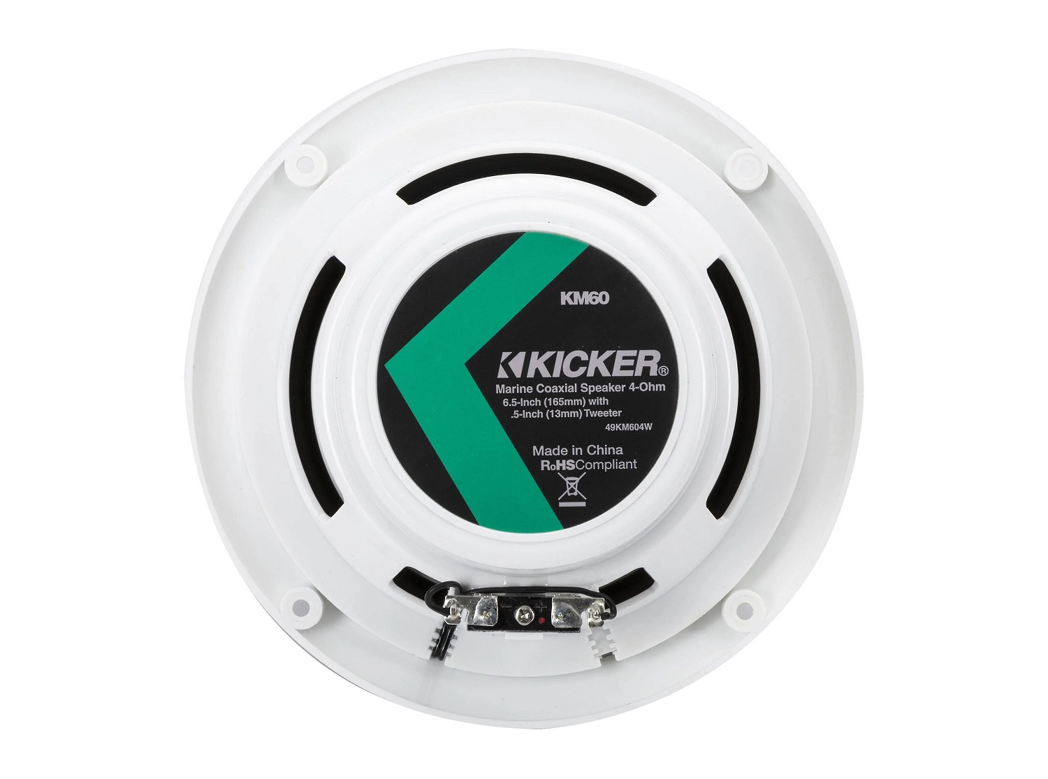 Τα Kicker 49KM604W ειναι ζευγος ηχειων για σκαφη (αδιαβροχα), 2 δρομων με 1x 6.5" woofer και 1x 0.75" tweeter. Περιλαμβανονται λευκες γριλλιες.