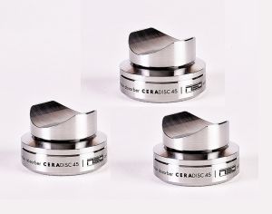 Another secret is the material the pads are made of, their shape, and, of course, the precisely calculated placement of the balls. Each CERADISC model is a unique masterpiece of this technology. We always produce them with multiple ways of mounting the instrument: either you place them underneath, for example, under an amplifier, or you use the recessed version for speaker tips, or we have a model designed for cables to rest on top.