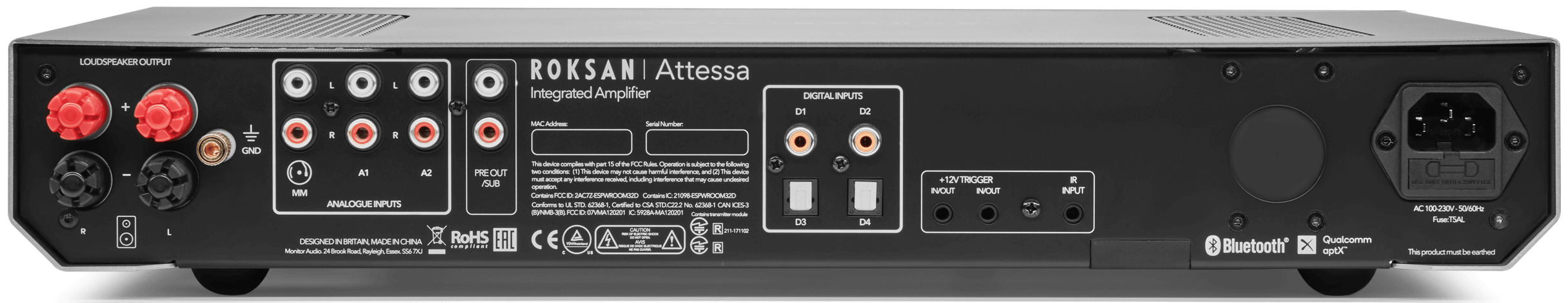 - Bluetooth: A2DP Audio profile / Codecs: SBC, aptX & AAC Bluetooth Range: 15m (typical)