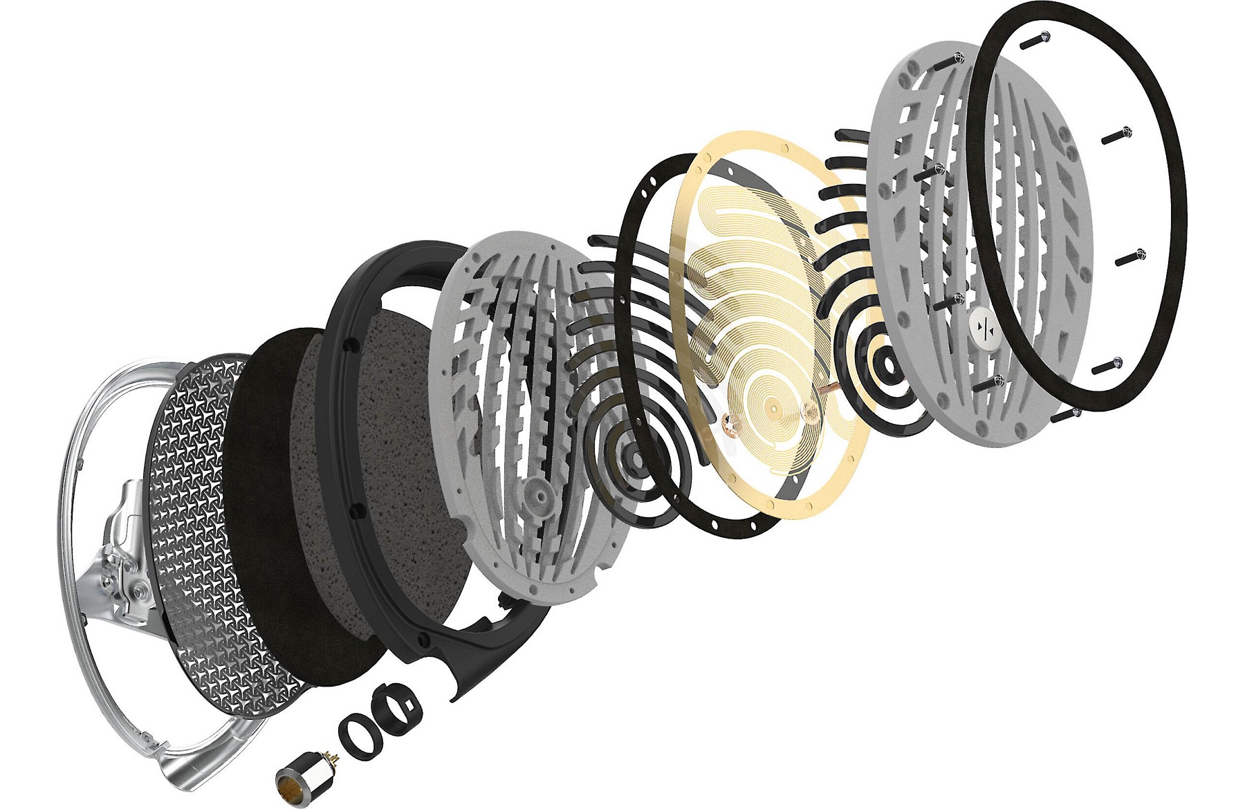 Planar magnetic drivers in general are pretty complex, but here are the basic physics: a super-sized diaphragm moves lots of air, resulting in spacious sound with true-to-life dynamics. The diaphragm is covered with a flexible voice coil circuit and trapped in a magnetic field. It moves when the circuit receives an audio signal.