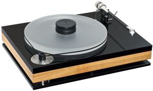 The dps turntable structure comprises a series of layers, a laminate design comprising a dense foam mat which sits on your turntable support, then a high mass aluminium base, where the high torque motor attaches, also locates and retains three foamed elastomer pucks which in turn support the central layer with a decorative wooden surround available in a choice of wood finishes. Internally, this layer described as a heterogenous sandwich plinth, contains a laminate of wood and damping foils topped with a layer of cork which has the effect of stopping high frequency resonances getting into the top layer, the black acrylic top plate.