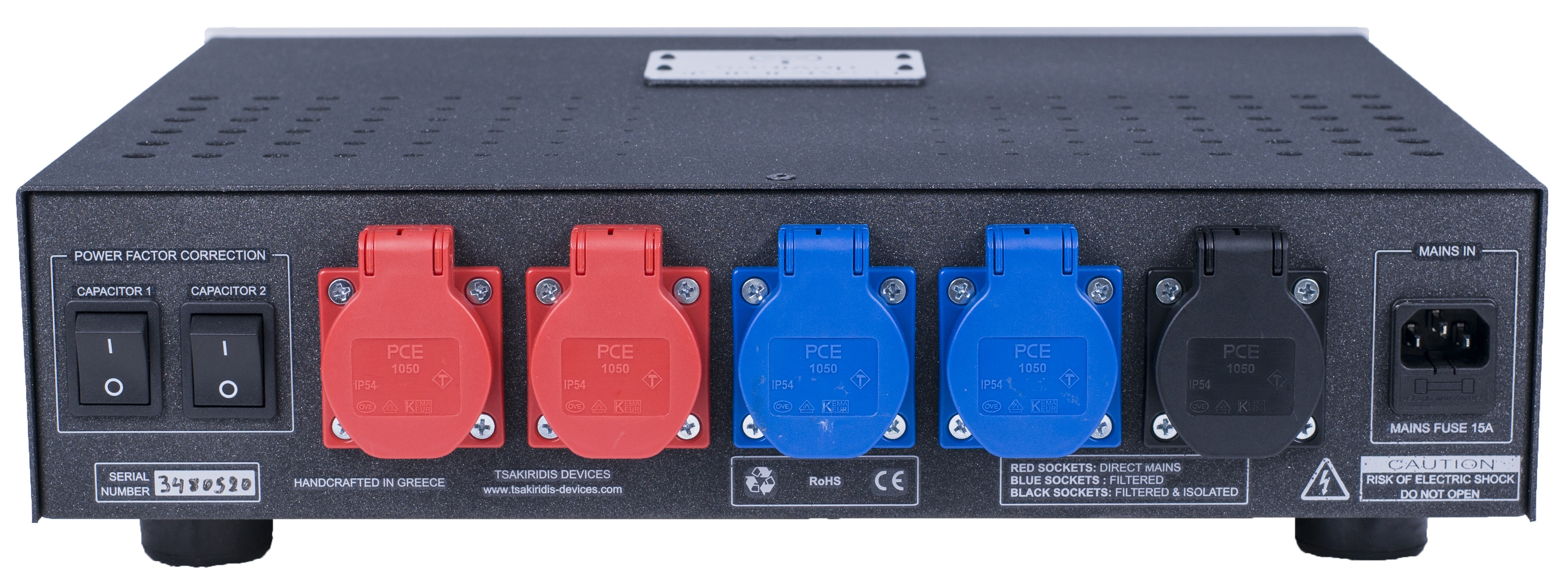 Optional Soft start circuit is available with extra charge. The soft start is very useful especially if you have high power amplifiers. The soft start function can be applied to the direct mains sockets to the filtered sockets or to the isolated sockets and in any combination of these socket groups as desired.