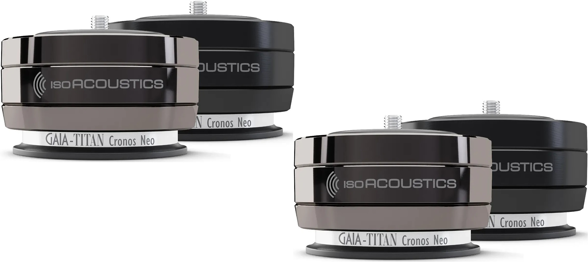 Τα IsoAcoustics Gaia-Titan Rhea Neo ειναι σετ 4 παρεμβυσματων, φορτιου 47.5 kg το καθενα (190 kg συνολικα για τα 4). Αντικαθιστουν τα εργοστασιακα ποδαρακια ωστε να απορροφουν ανεπιθυμητες δονησεις, βελτιωνοντας συνηθως το ηχητικο αποτελεσμα.
