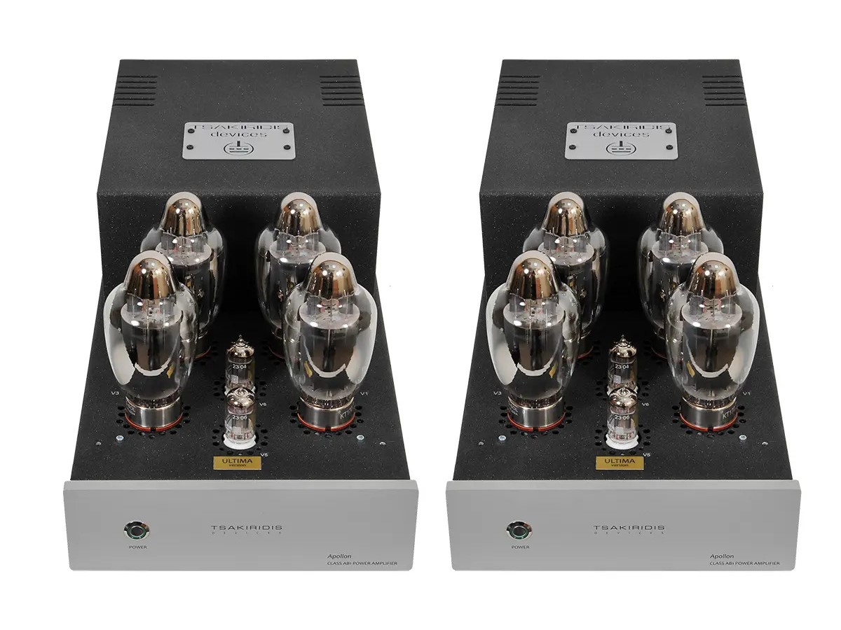 Οι Tsakiridis Devices Apollon Ultima ειναι ζευγος μονοφωνικων τελικων ενισχυτων Class AB1, ισχυος 2x200 wrms στα 8ohms, με 4x KT170 ο καθενας. Διαθετει πυκνωτες Mundorf Supreme Silver Gold Oil, Rike Ausdio QCap4 Copper Oil, μεταχηματιστες 16 τυλιγματων απο χαλκο υπερυψηλης καθαροτητας 6Ν και ασημοκολληση WBT παντου.