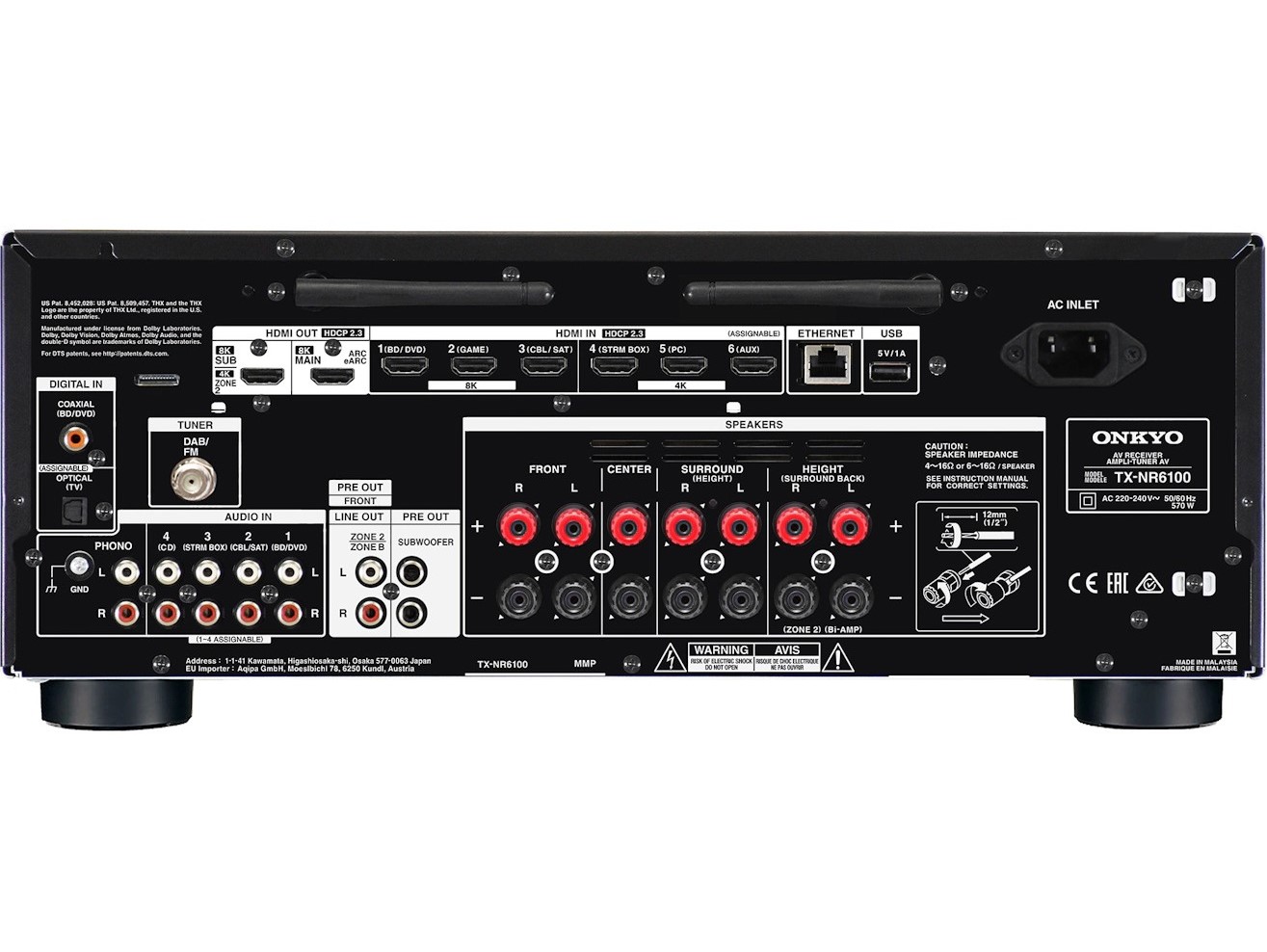 Ο Onkyo TX-NR6100 M2 ειναι home cinema ραδιοενισχυτής (FM/AM) 7.2 καναλιων (7x100wrms at 8 ohms), με Dolby Digital, DTS, Dolby Atmos και DTS:X. Ασυρματη συνδεσιμοτητα: Bluetooth, WiFi. Διαθετει και Zone 2.